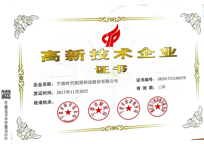 時(shí)代鋁箔通過高新技術(shù)企業(yè)認(rèn)證