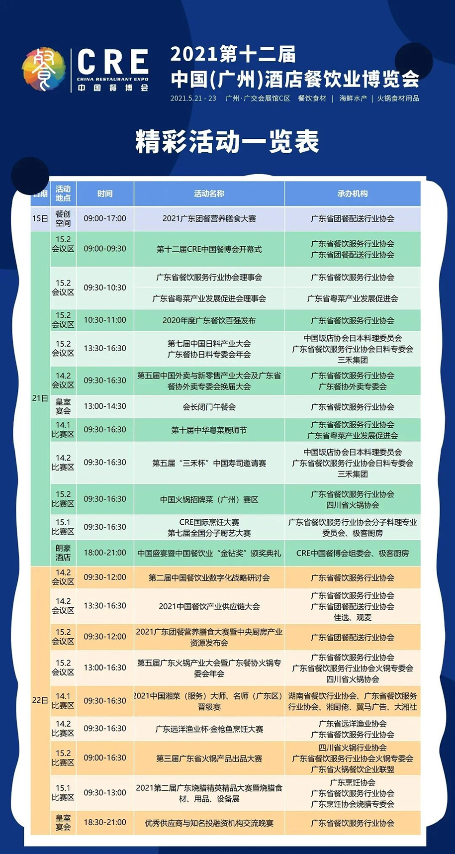 中國酒店餐飲業(yè)博覽會(huì)(簡稱:CRE中國餐博會(huì))是國內(nèi)規(guī)模最大、影響力最強(qiáng)、品質(zhì)最高的酒店餐飲博覽會(huì)之一。 CRE中國餐博會(huì)作為餐飲行業(yè)的風(fēng)向標(biāo),將中國酒店餐飲行業(yè)推向新前沿,并在廣州國際美食之都全力拓展,助力擦亮“食在廣東”金字招牌,協(xié)助全國餐飲供應(yīng)商及服務(wù)商引入各種產(chǎn)品及服務(wù)。